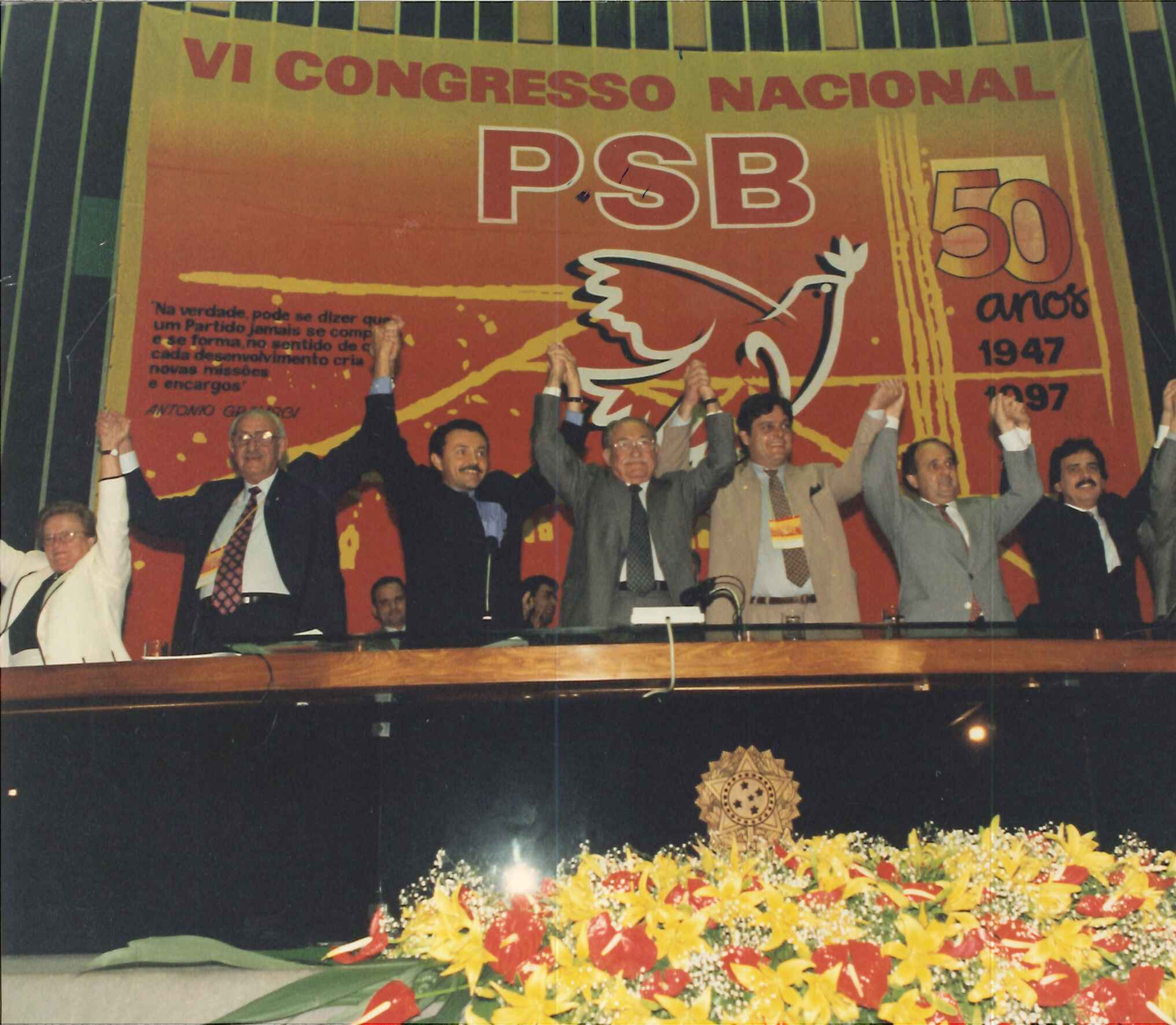 Coleção a cerca do V Congresso Nacional do Partido Socialista Brasileiro, realizado em novembro de 1995 – Recife/PE O V Congresso Nacional do PSB foi realizado no Teatro Guararapes, do Centro de Convenções de Pernambuco, em Olinda, nos dias 16 a 18 de novembro de 1995 e discutiu entre outros, os seguintes temas: Neoliberalismo e Globalização da Economia; A Esquerda e os Excluídos - A incorporação das massas a um projeto de nação; A Construção Partidária e a Nova Lei dos Partidos Políticos. Durante o ato político cultural de inauguração do Congresso foram homenageados o professor Florestan Fernandes e os 300 anos de nascimento de Zumbi dos Palmares.