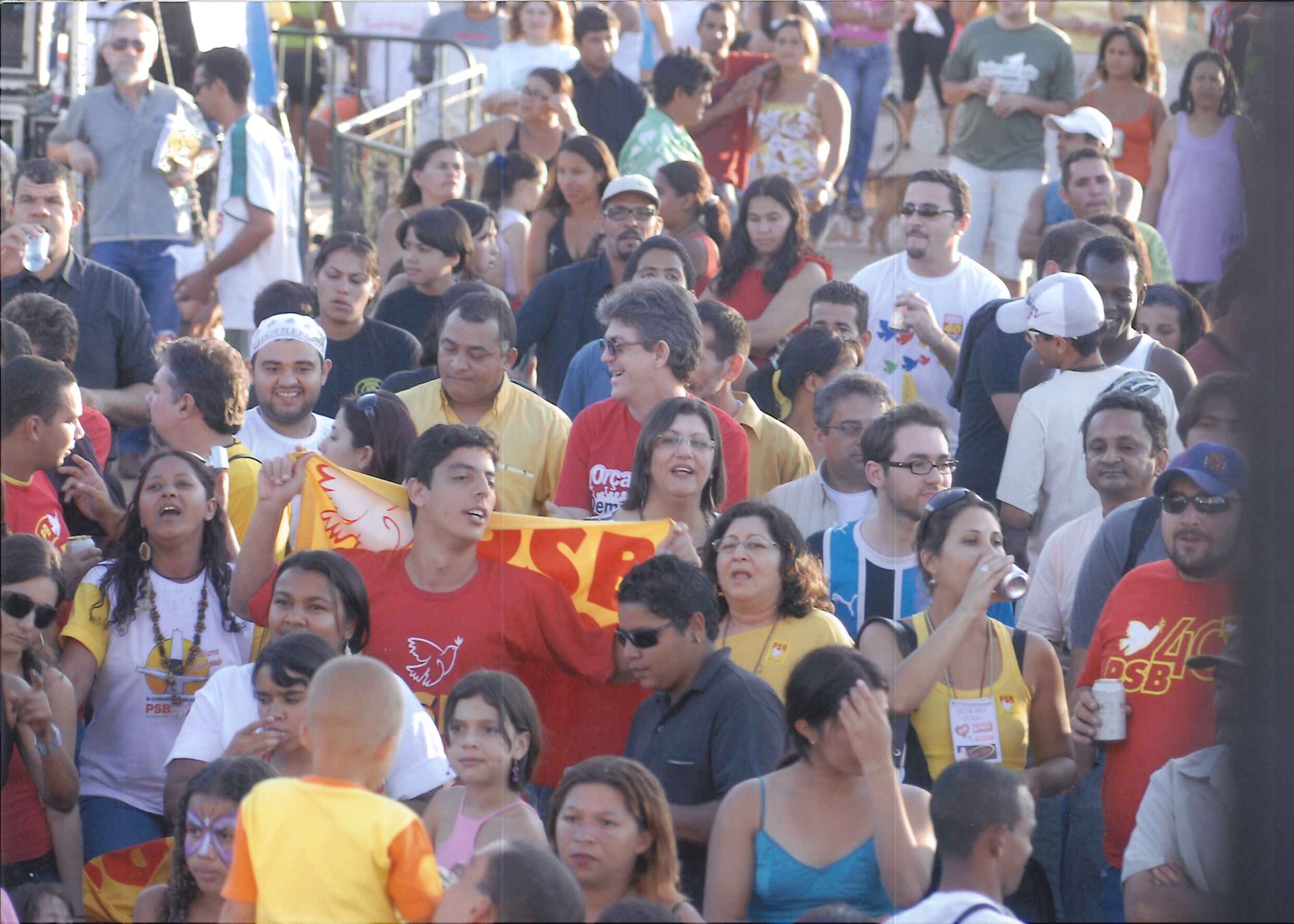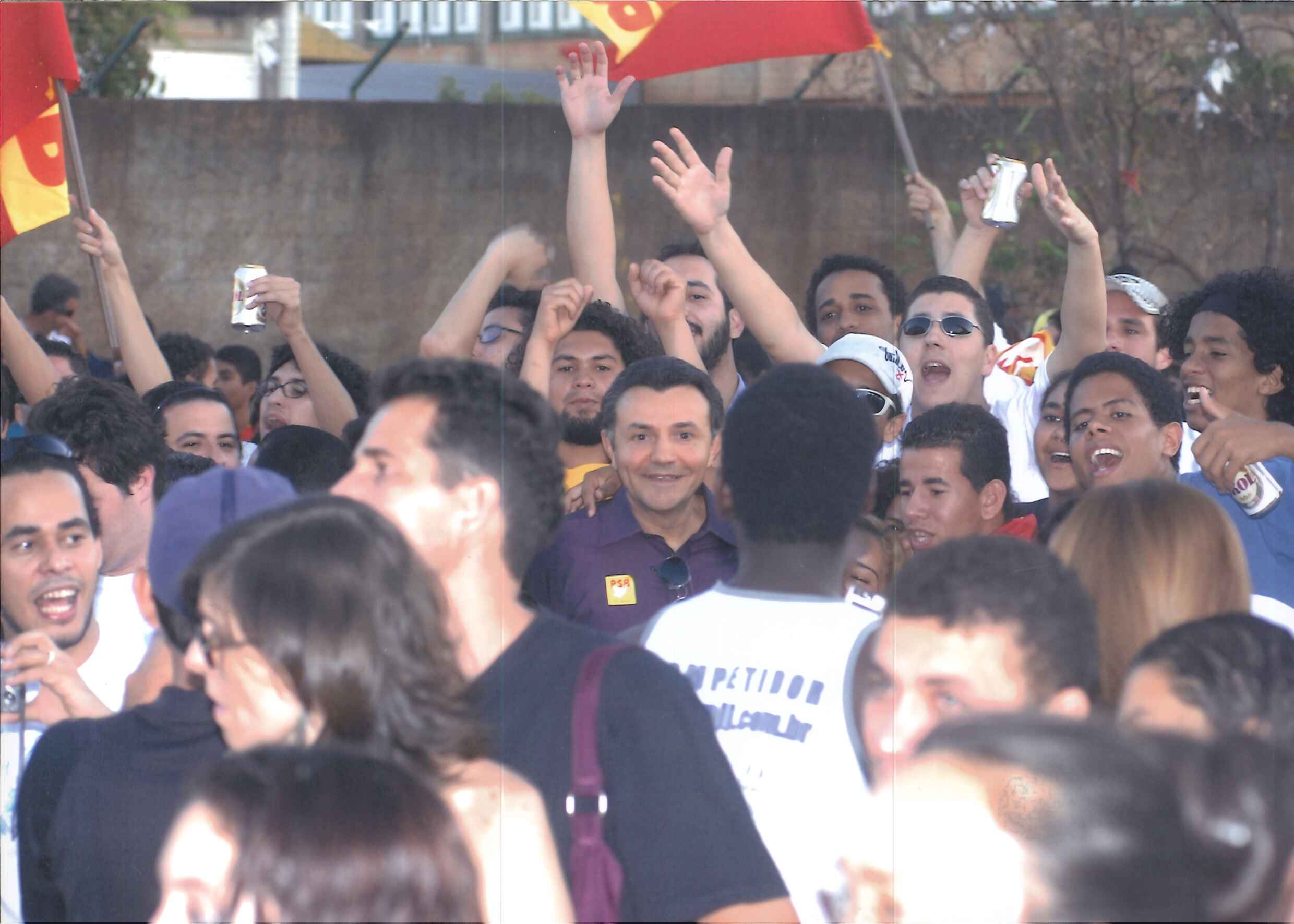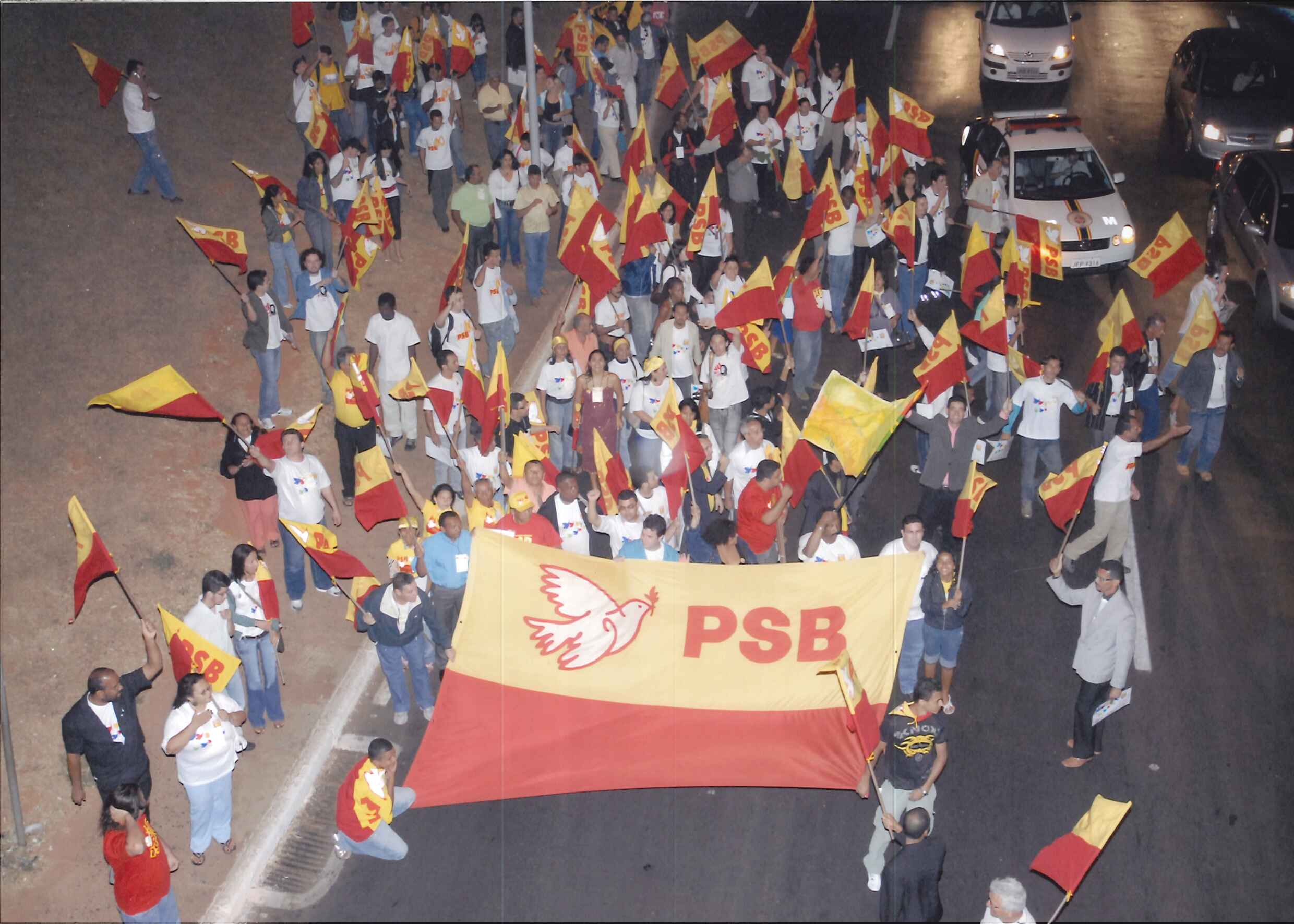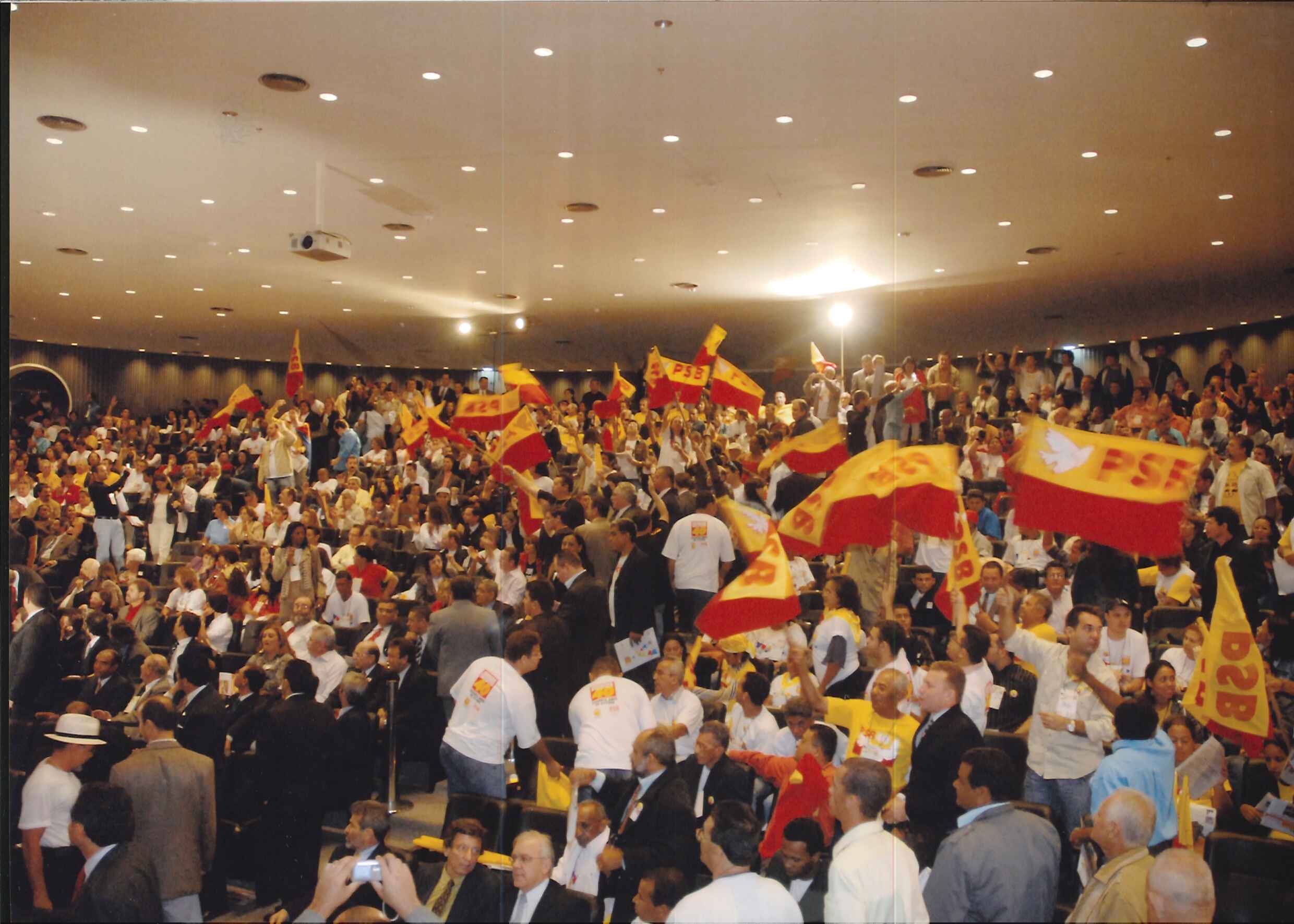 "Militantes socialistas agitam bandeiras do Partido no ato político que deu início as celebrações dos 60 Anos do PSB. "