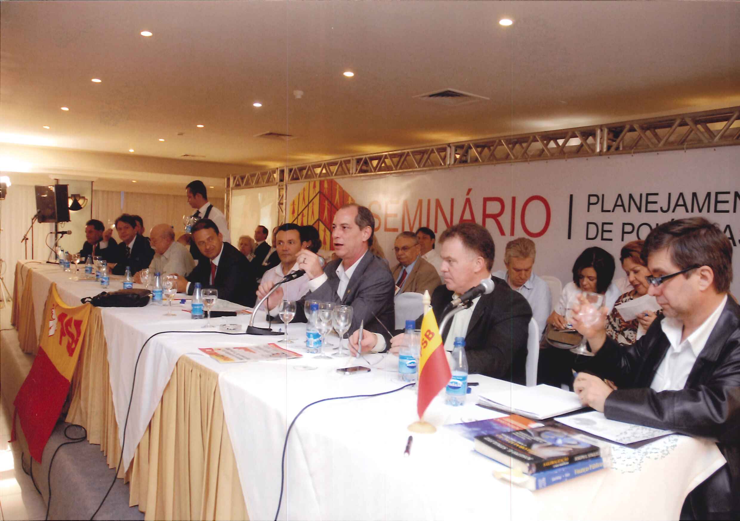 "Mesa de abertura do Seminário Planejamento Estratégico de Políticas Públicas. Da esquerda para a direita: Dep. Alexandre Cardoso, Vice-Gov. Wilson Martins, Gov. Cid Gomes, Gov. Wilva de Faria, Roberto Amaral, Gov. Eduardo Campos, Carlos Siqueira, Mari Machado, Dep. Ciro Gomes, Dep. Beto Albuquerque, Sen. Casagrande, Dep. Márcio França, Pref. Iradilson."