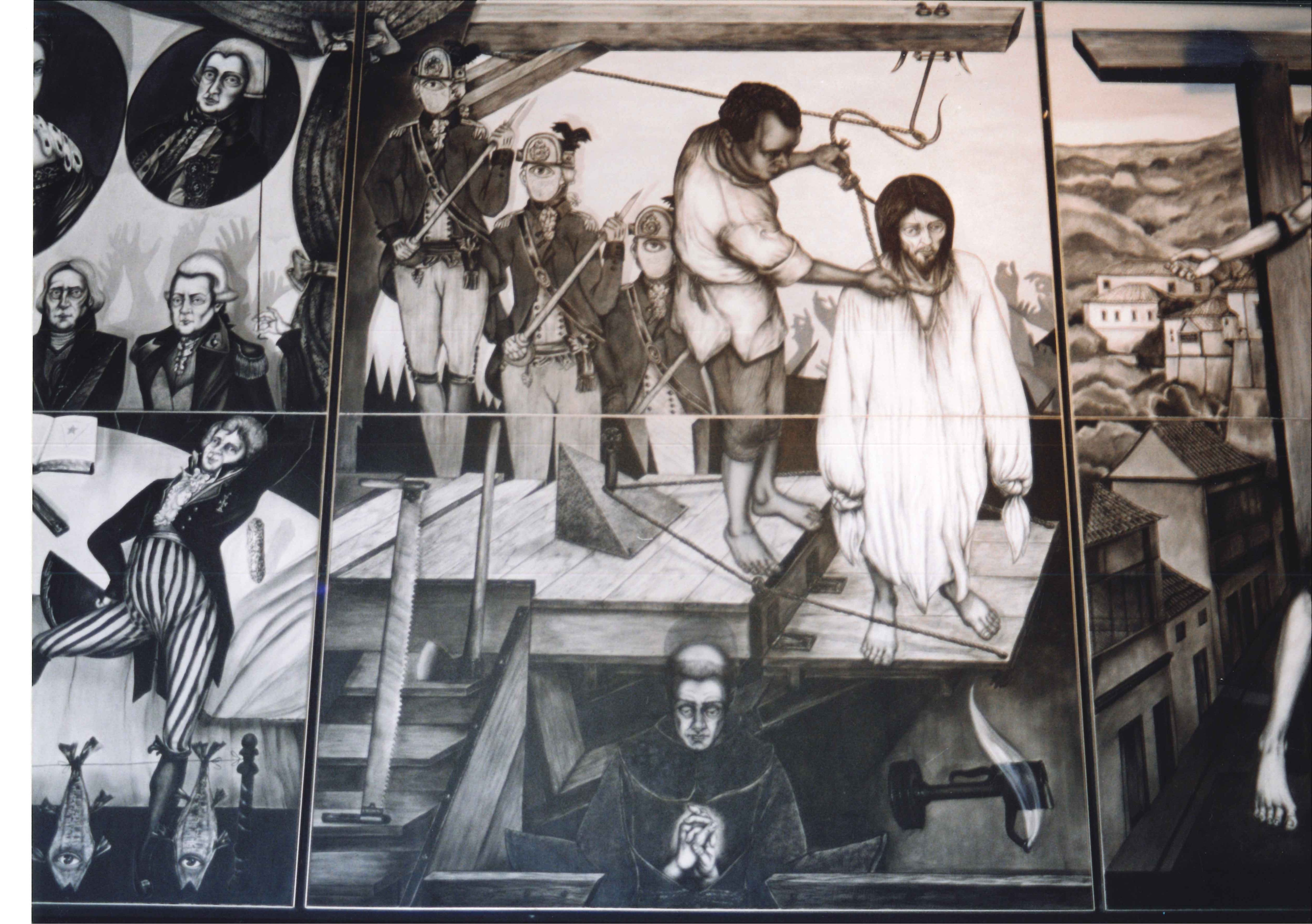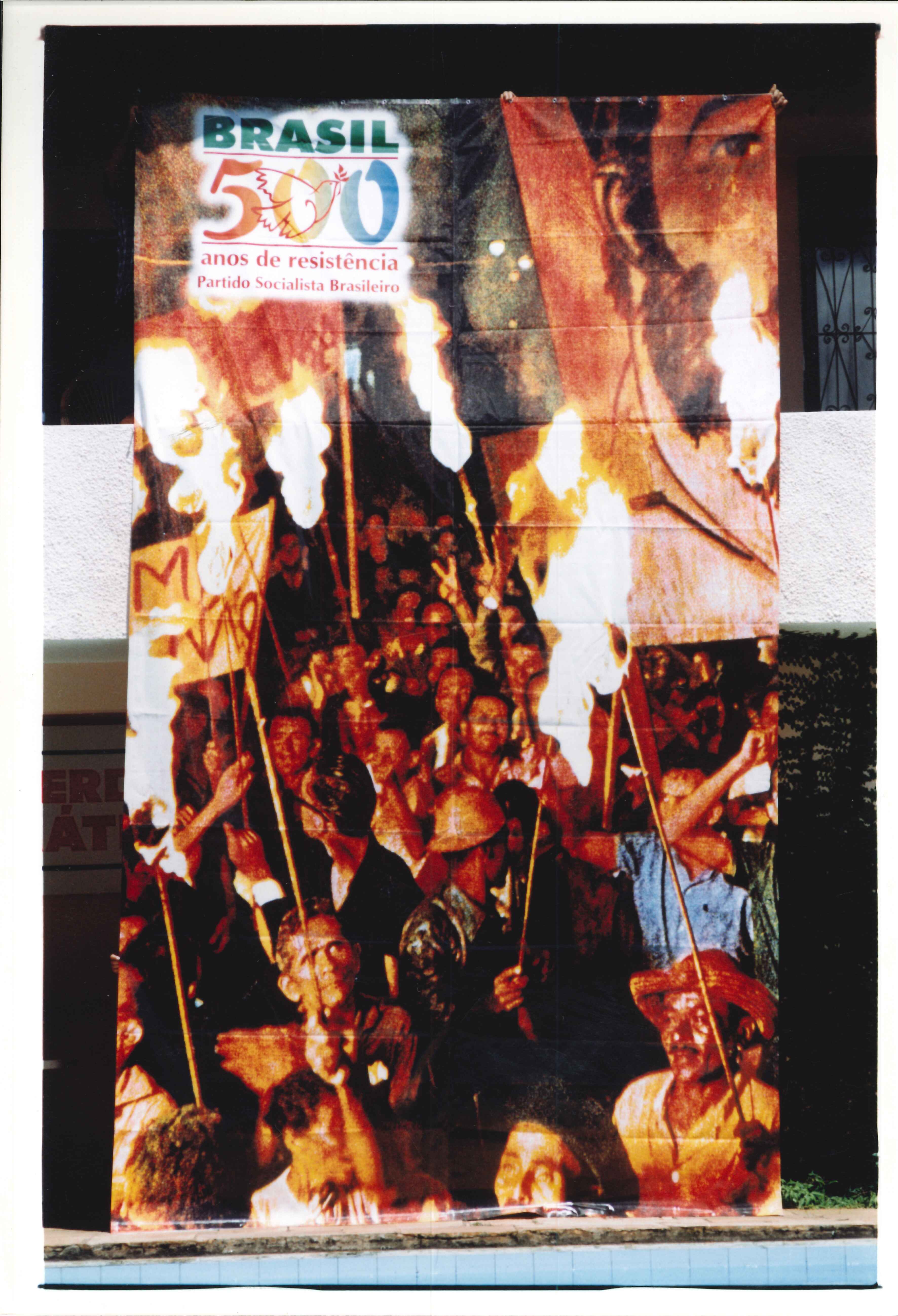 Painel de homenagem aos 500 Anos de Brasil, que aconteceria no ano seguinte.