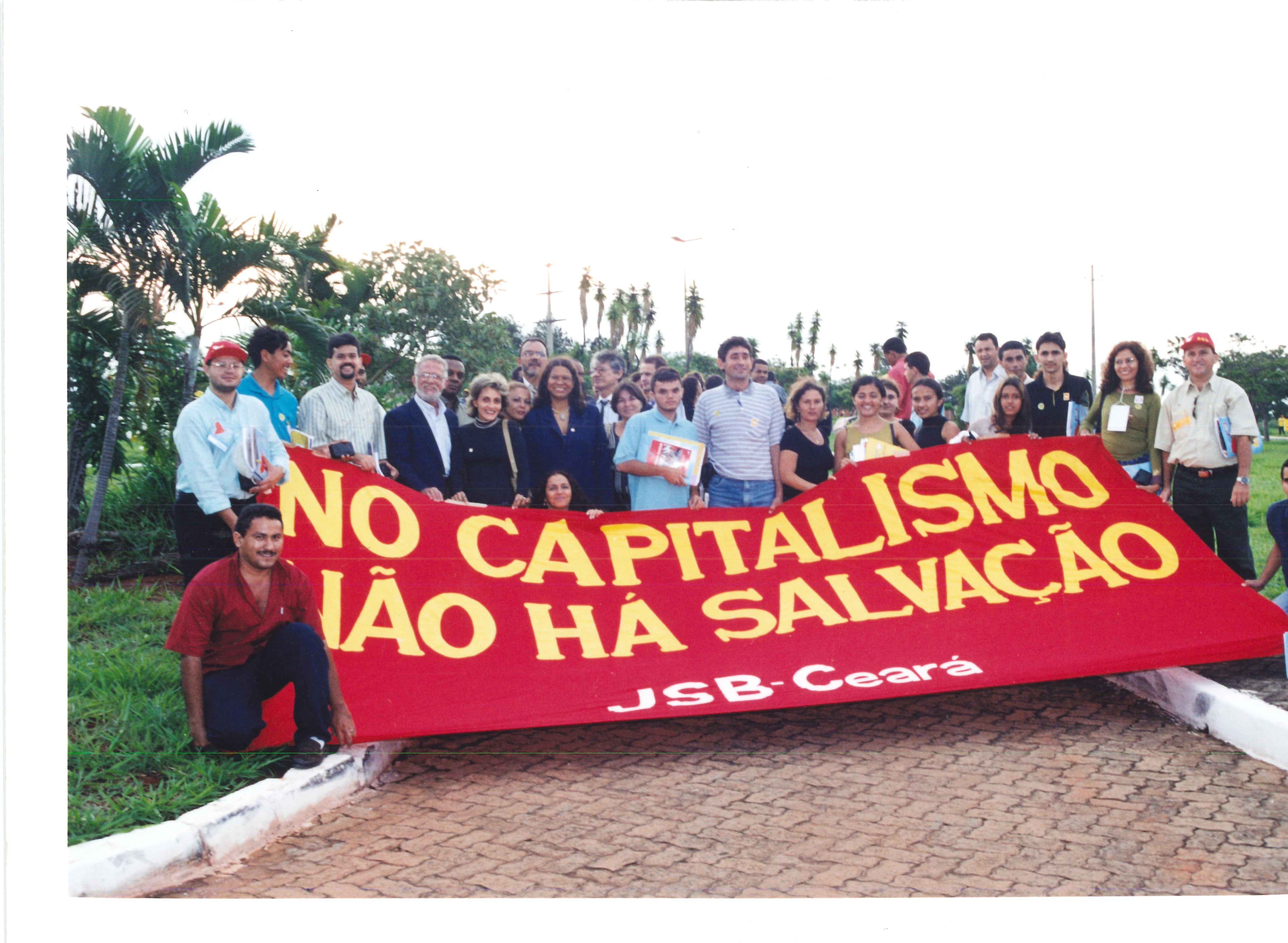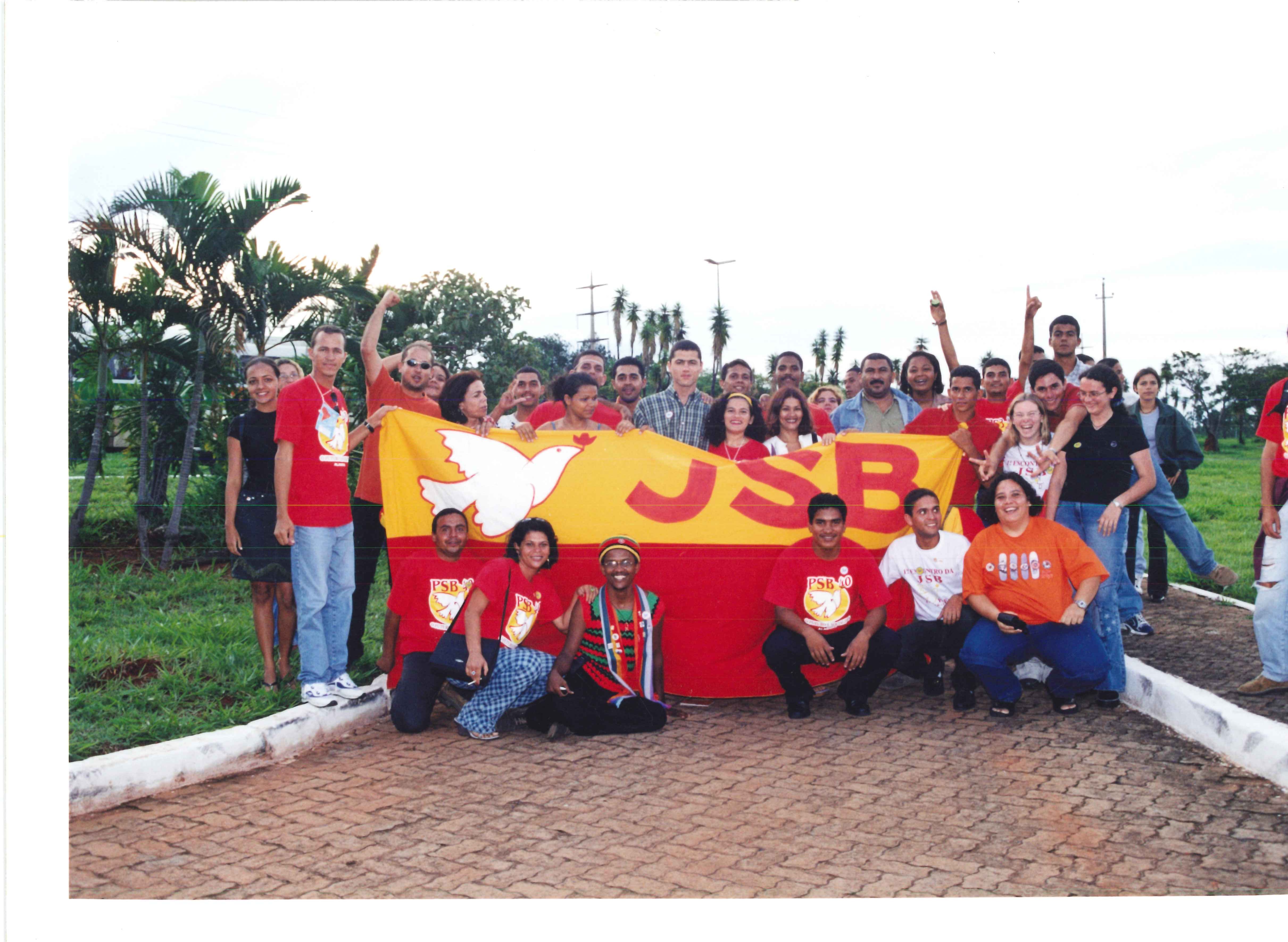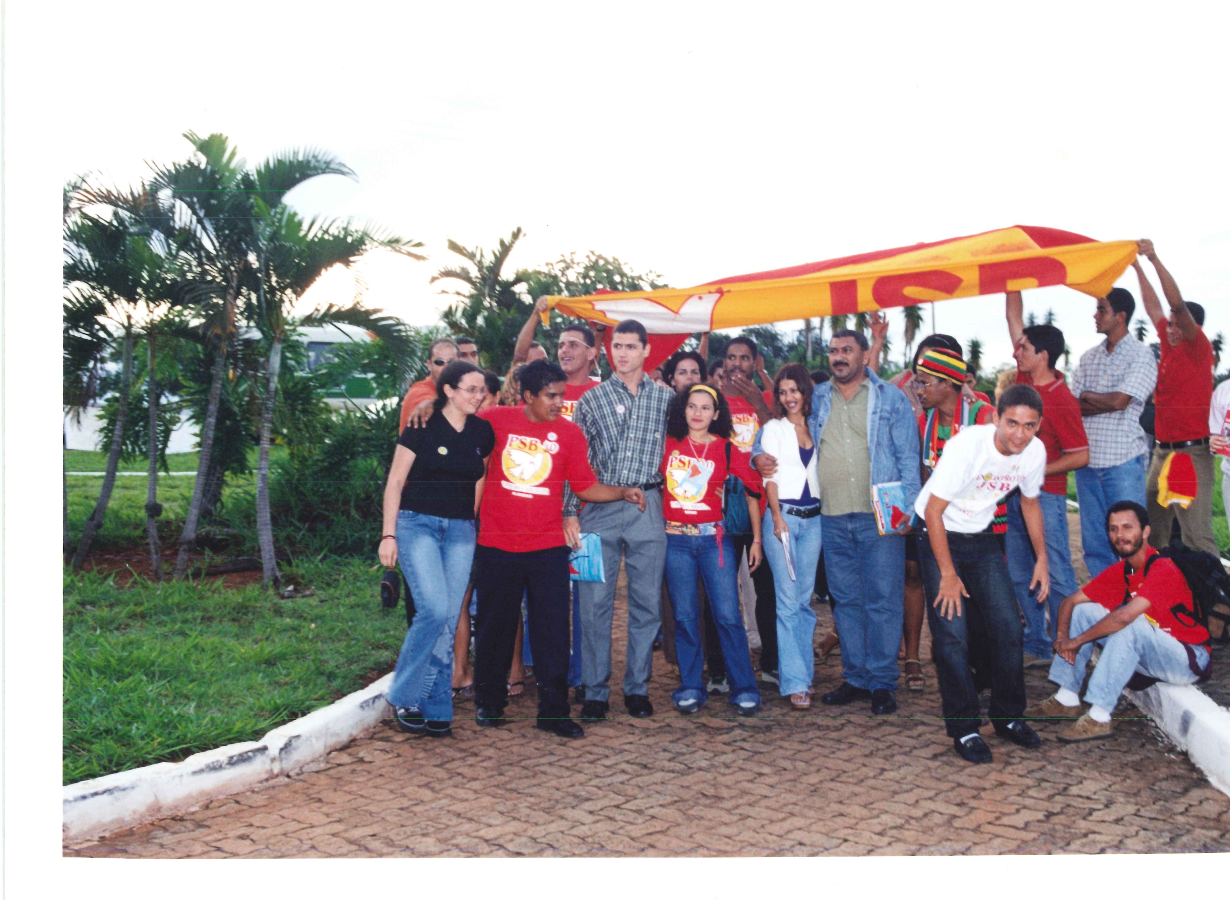 Integrantes da Juventude Socialista Brasileira em frente ao local de realização do VIII Congresso.