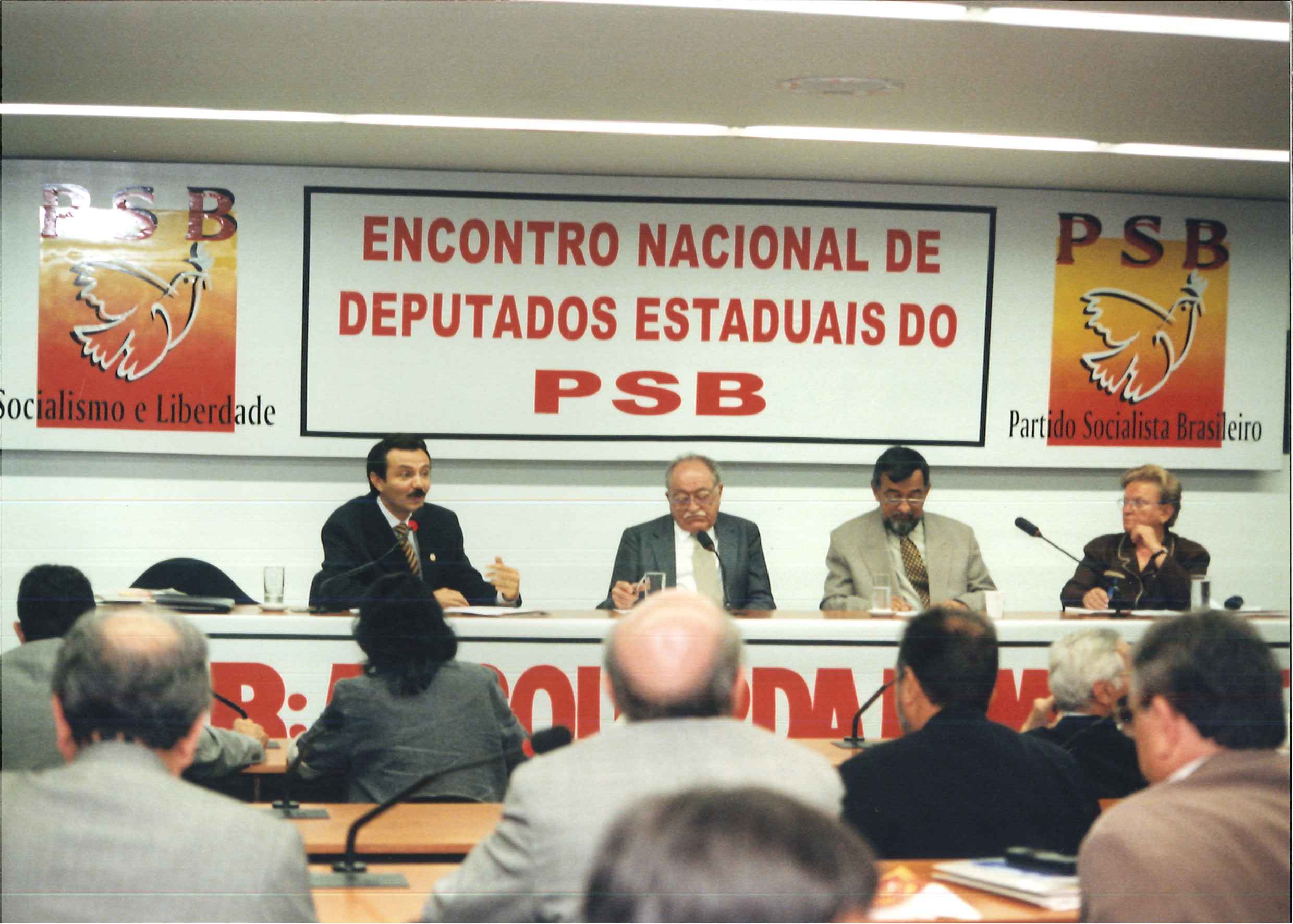 IV Congresso Nacional do PSB, realizado nos dias 04, 05, 06 e 07 de setembro de 1993, em Macéio, AL. Na foto, da esquerda para a direita, Roberto Amaral, Jamil Haddad, Miguel Arraes e Ademir Andrade.